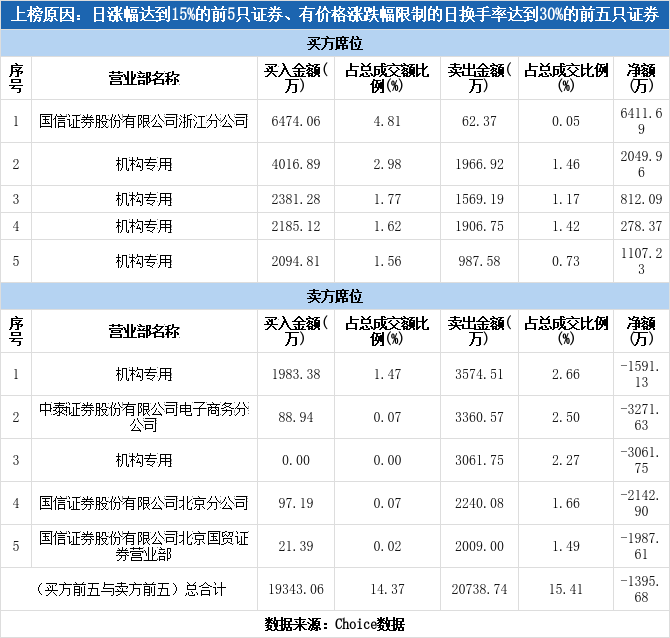 多主力现身龙虎榜,清水源涨停(11-10)