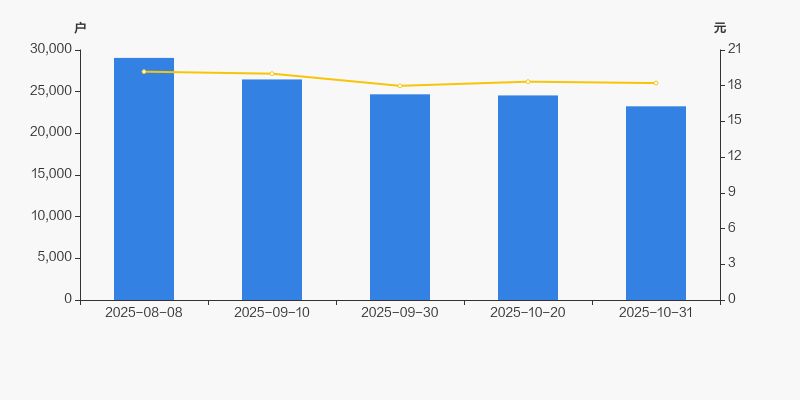 2025年8月8日至今,公司股东户数显著下降,区间跌幅为19.99%。2025年8月8日至2025年10月31日区间股价下降5.01%。