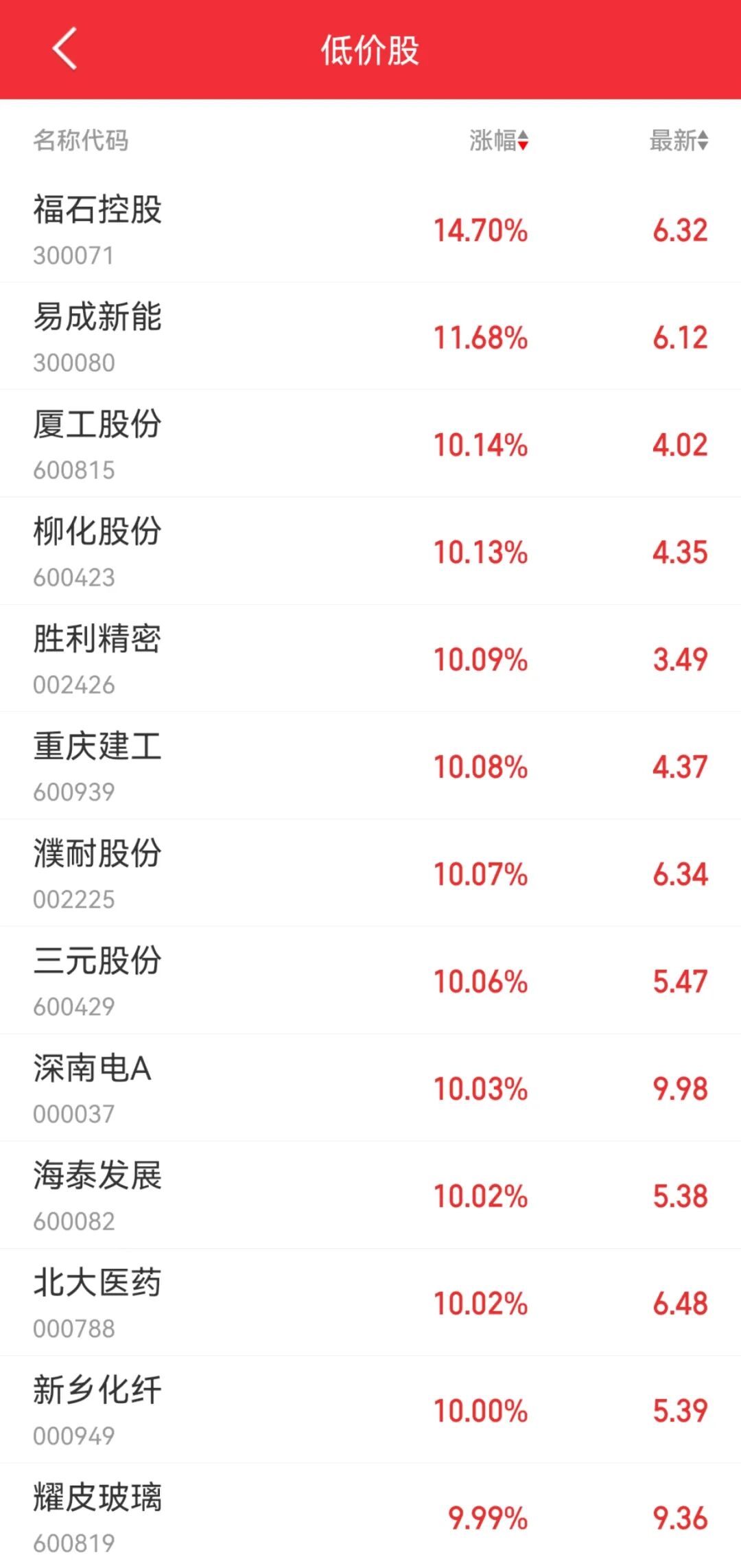 今天,低价股持续走强,福石控股、易成新能涨超11%,多只个股出现快速拉升涨停行情。
