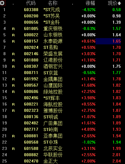 同花顺数据显示,截至今天收盘,收盘价在2元以下的个股共有23只,其中1元以下的个股仅2只。今年以来,低价股板块累计涨幅超30%。