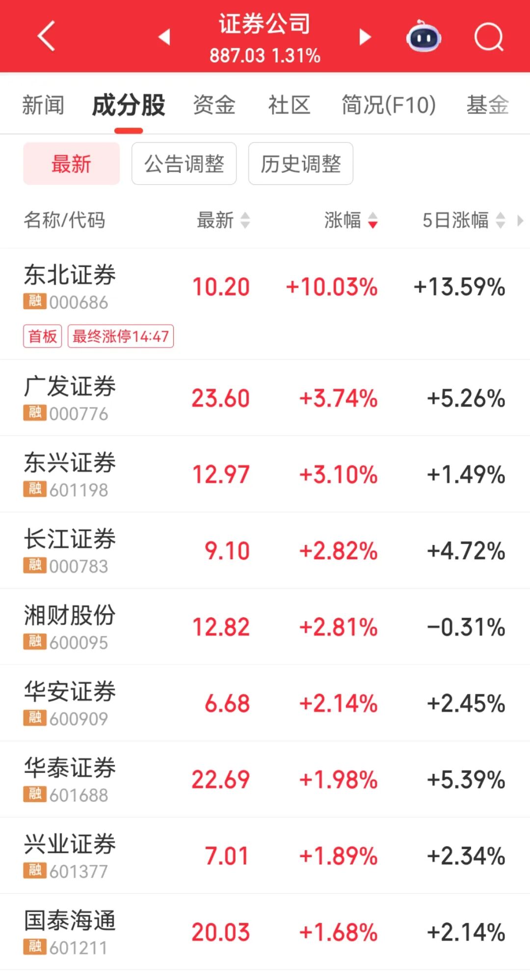 券商、保险等大金融板块午后异动,东北证券涨停。