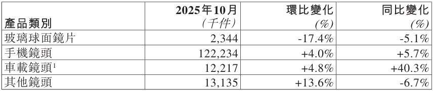 舜宇光学科技:10月份车载镜头等多个产品出货量增长