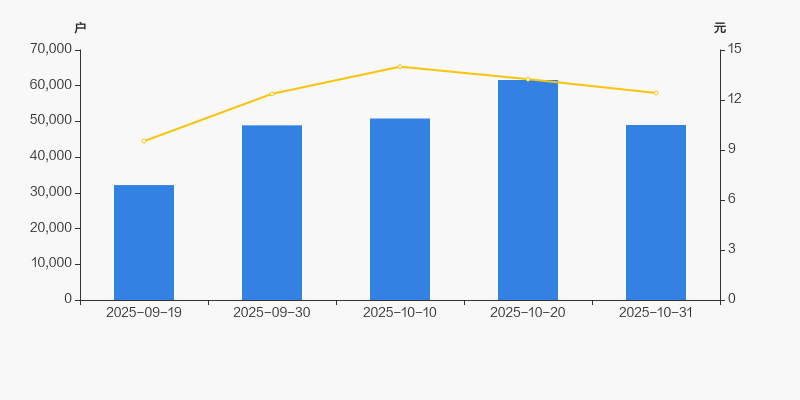 2025年9月19日至今,公司股东户数显著大幅增长,区间涨幅达52.27%。2025年9月19日至2025年10月31日区间股价上涨30.33%。
