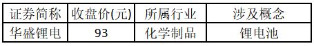 从涨势强度来看,涨停板个股中,股价创出历史新高的个股共有1只,包括华盛锂电。