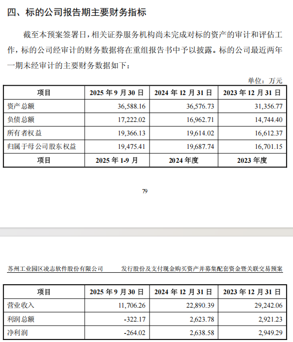 截至2025年第三季度末,凌志软件的总资产为17.49亿元,归母所有者权益为12.32亿元;凯美瑞德的总资产为3.66亿元,归母所有者权益为1.95亿元。