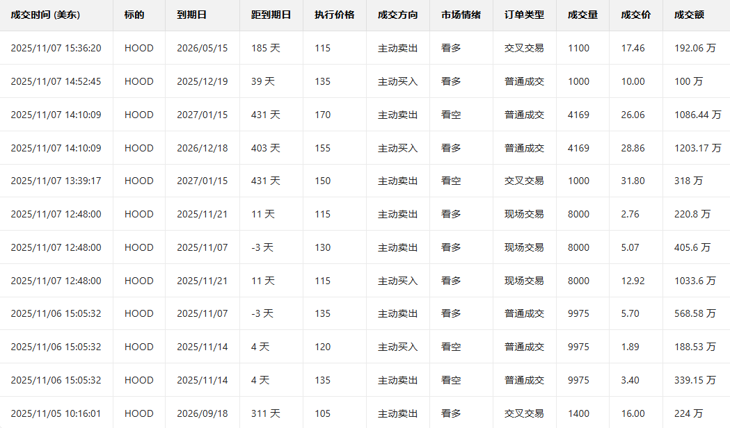 2、Robinhood上一交易日涨2.58%,前一日认沽/认购比例小幅上行,成交量小幅度下行。