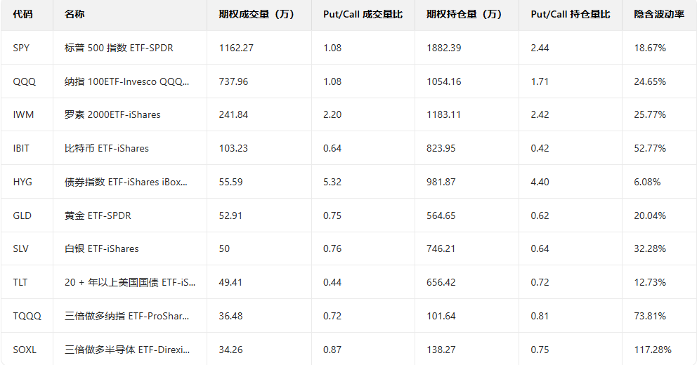 三、美股ETF期权成交榜美股ETF期权成交量排行榜前十