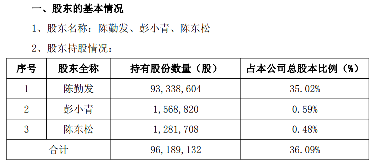 公告介绍,公司控股股东、实际控制人陈勤发及董事、高管彭小青、陈东松计划自2025年12月2日至2026年3月1日期间,通过集中竞价交易和大宗交易方式减持公司股份。其中,陈勤发拟减持不超过790万股,占公司总股本的3%;彭小青拟减持不超过39万股,占公司总股本的0.15%;陈东松拟减持不超过32万股,占公司总股本的0.12%。