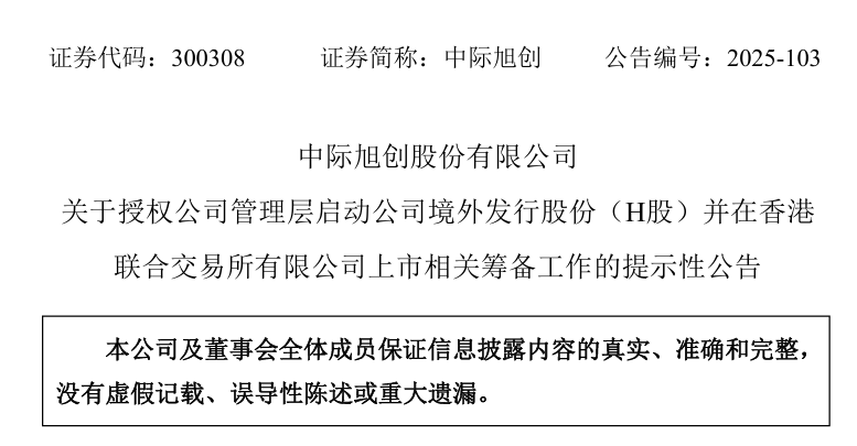 11月10日晚间,中际旭创公告称,公司于2025年11月10日召开董事会,审议通过相关议案,拟在境外发行股份(H股)并在香港联交所上市。
