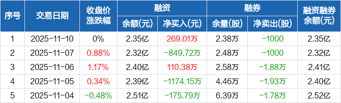 中海油服:融资净买入269.01万元,融资余额2.35亿元(11-10)