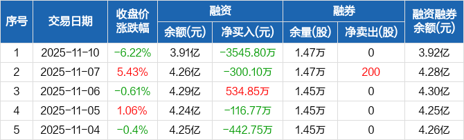 天承科技:融资净偿还3545.8万元,融资余额3.91亿元(11-10)