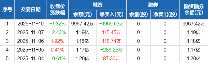 亚联机械:融资净偿还1969.63万元,融资余额9967.42万元(11-10)