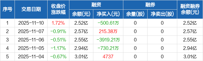 中胤时尚:融资净偿还500.61万元,融资余额2.52亿元(11-10)