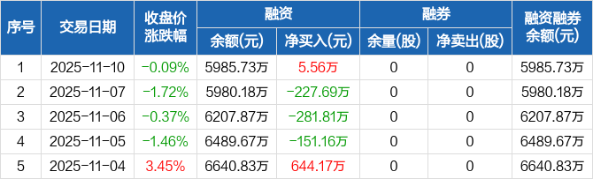 致远新能:融资净买入5.56万元,融资余额5985.73万元(11-10)