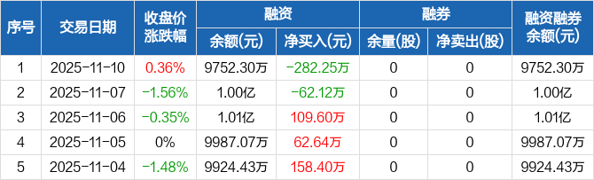 浙江华远:融资净偿还282.25万元,融资余额9752.3万元(11-10)