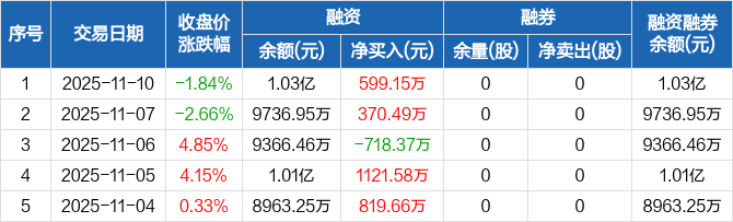 盛德鑫泰:融资净买入599.15万元,融资余额1.03亿元(11-10)
