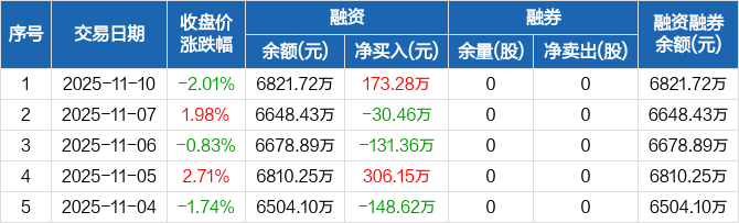 屹通新材:融资净买入173.28万元,融资余额6821.72万元(11-10)