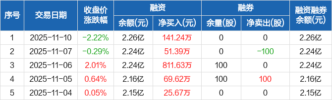 泰嘉股份:连续5日融资净买入累计1099.55万元(11-10)