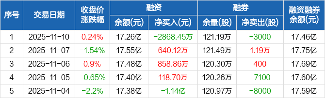 万丰奥威:融资净偿还2868.45万元,融资余额17.26亿元(11-10)