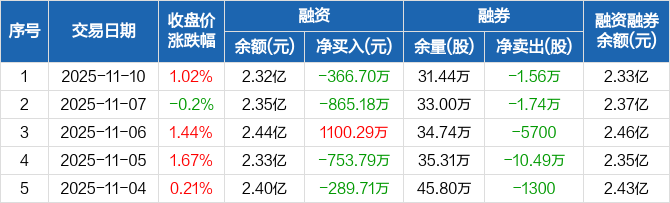 粤电力A:融资净偿还366.7万元,融资余额2.32亿元(11-10)