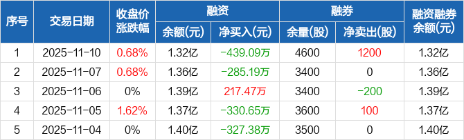 公元股份:融资净偿还439.09万元,融资余额1.32亿元(11-10)