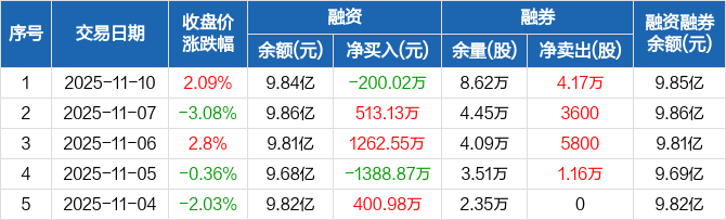力源信息:融资净偿还200.02万元,融资余额9.84亿元(11-10)