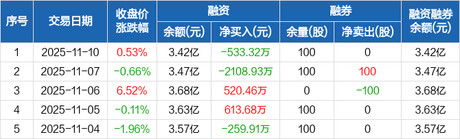 金溢科技:融资净偿还533.32万元,融资余额3.42亿元(11-10)