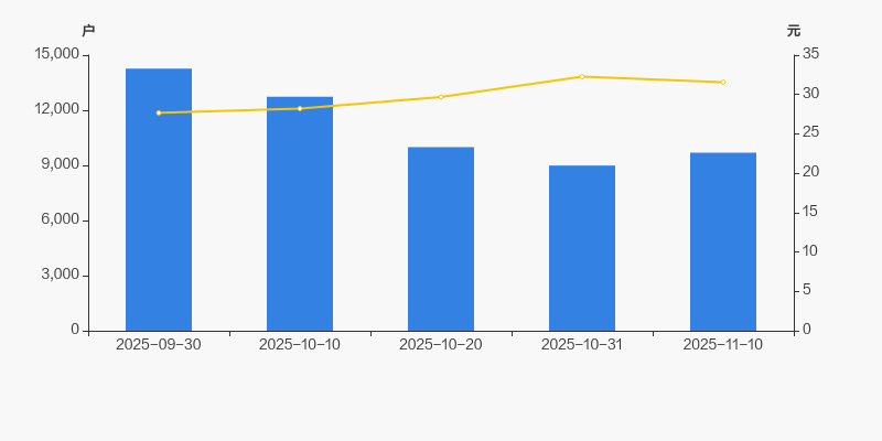 2025年9月30日至今,公司股东户数显著下降,区间跌幅为32.07%。2025年9月30日至2025年11月10日区间股价上涨14.06%。