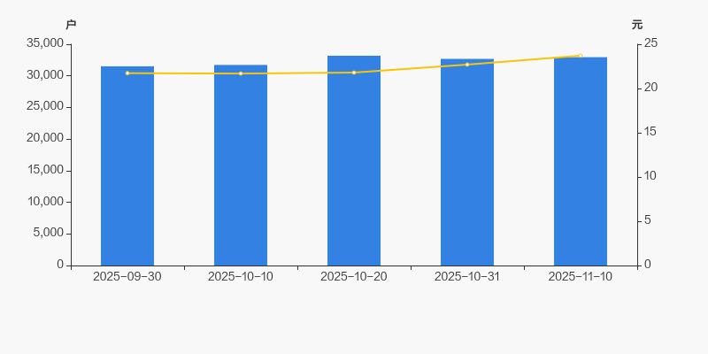 2025年9月30日至今,公司股东户数有所增长,区间涨幅为4.59%。2025年9月30日至2025年11月10日区间股价上涨9.11%。