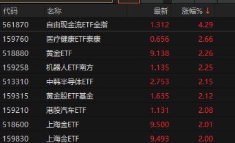 ETF开盘:自由现金流ETF全指涨4.29% 文娱传媒ETF跌0.74%