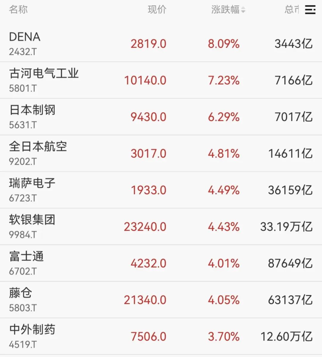 个股方面,软银集团、全日本航空、瑞萨电子等涨超4%;日本制钢股价涨超6%,因第二财季营业利润超出市场预期。
