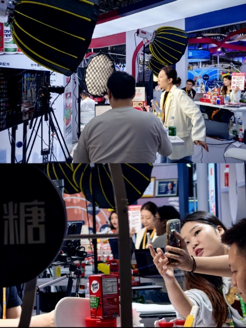 第八届进博会现场随处可见“店播”,线上线下联动。新京报贝壳财经记者俞金旻摄