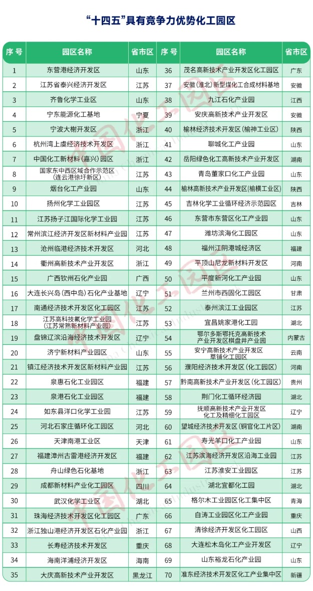 “十四五”具有竞争力优势化工园区名单发布