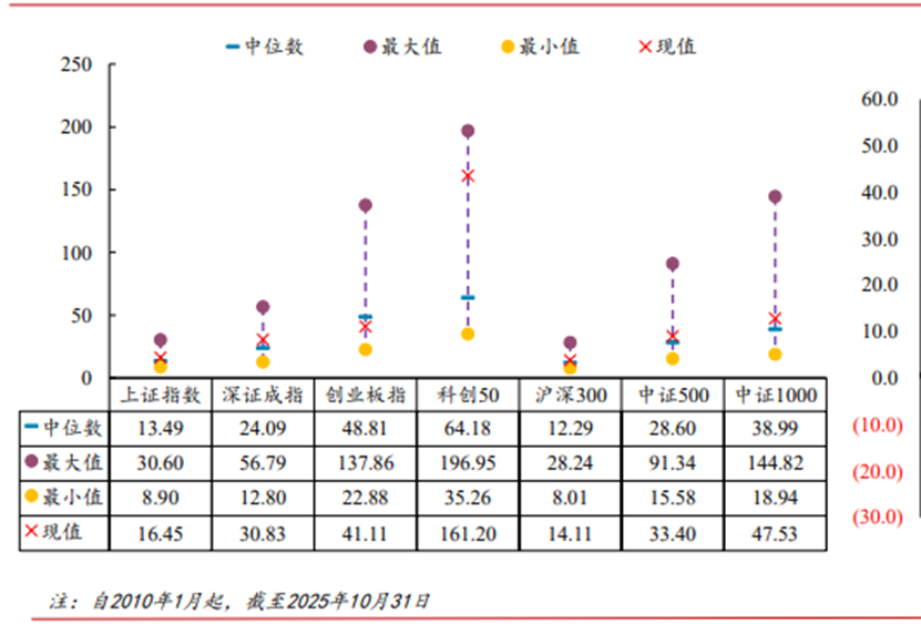 截至10月31日,科创50指数市盈率161.20倍,显著高于历史中位数的64.18倍;沪深300市盈率14.11倍,历史中位数为12.29倍。科创50的主要权重行业为半导体芯片等高科技行业,沪深300指数的金融、消费、周期等行业占比较高。ETF资金进出与这两个指数的市盈率水平紧密相关,机构正在加大低估值资产买入力度。