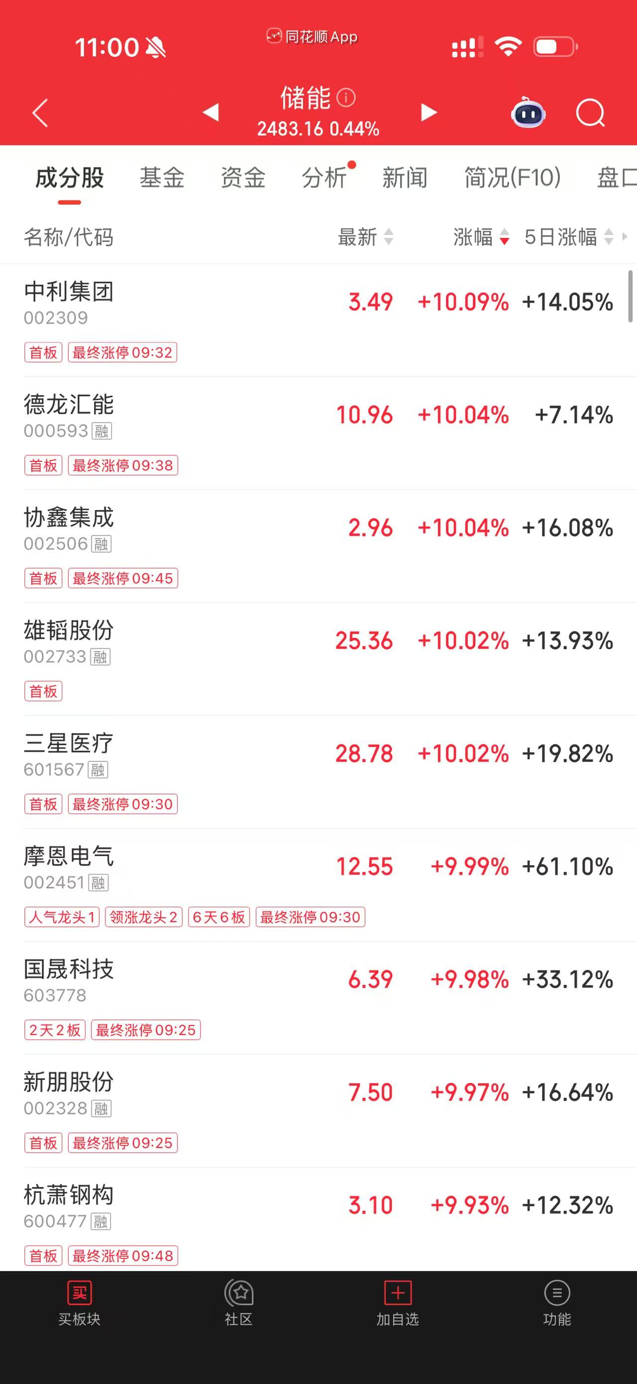 11月11日早盘,新能源板块强势领涨,光伏、储能概念涨幅居前。
