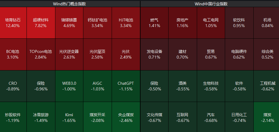 从板块上来看,电池概念股多股涨停,存储芯片板块反复活跃,超硬材料、房地产、光伏等板块震荡拉升,而煤炭、化工、汽车板块跌幅居前。