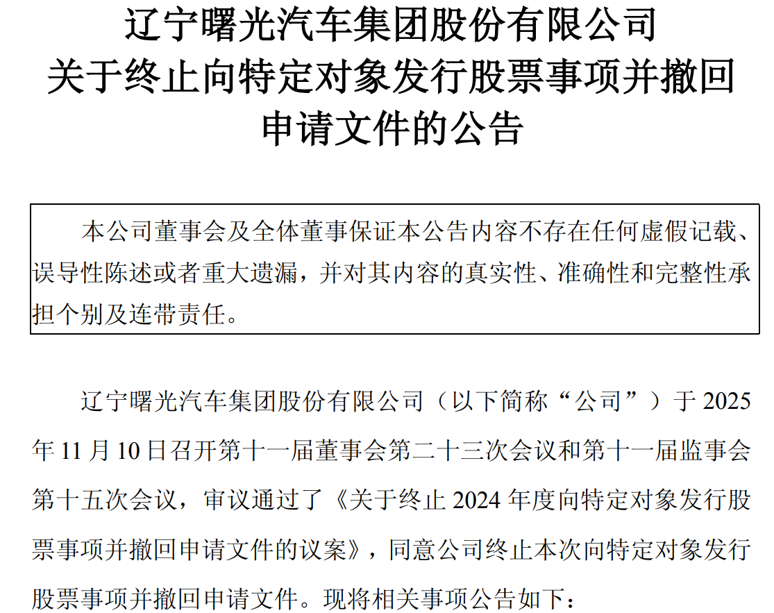 2025年7月31日,公司收到上海证券交易所出具的《关于辽宁曙光汽车集团股份有限公司向特定对象发行股票申请文件的审核问询函》,不过一直未有回复。