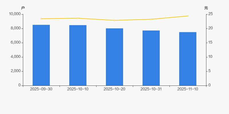 2025年9月30日至今,公司股东户数显著下降,区间跌幅为11.97%。2025年9月30日至2025年11月10日区间股价上涨4.08%。