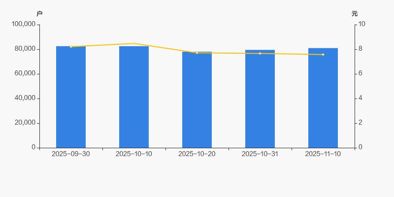 2025年9月30日至今,公司股东户数有所下降,区间跌幅为1.88%。2025年9月30日至2025年11月10日区间股价下降7.80%。