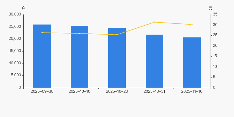 2025年9月30日至今,公司股东户数显著下降,区间跌幅为20.32%。2025年9月30日至2025年11月10日区间股价上涨14.88%。