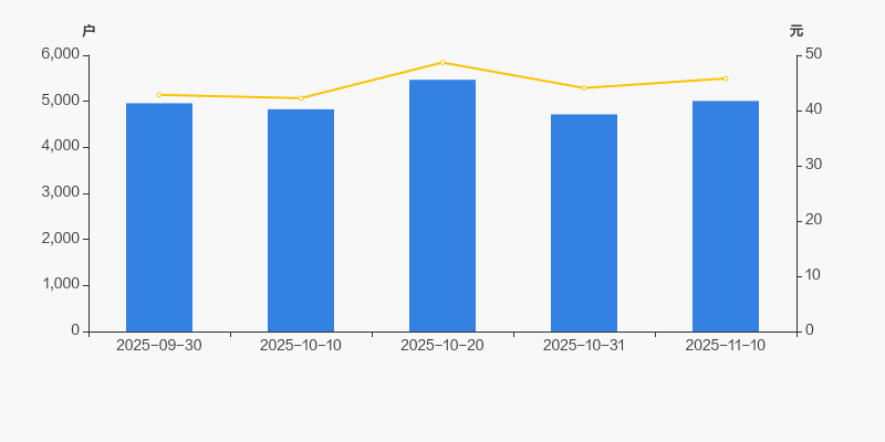 截至2025年11月10日,公司最新总股本为5000万股,其中流通股本为1643.75万股。户均持有流通股数量由上期的3485股下降至3283股,户均流通市值15.04万元。
