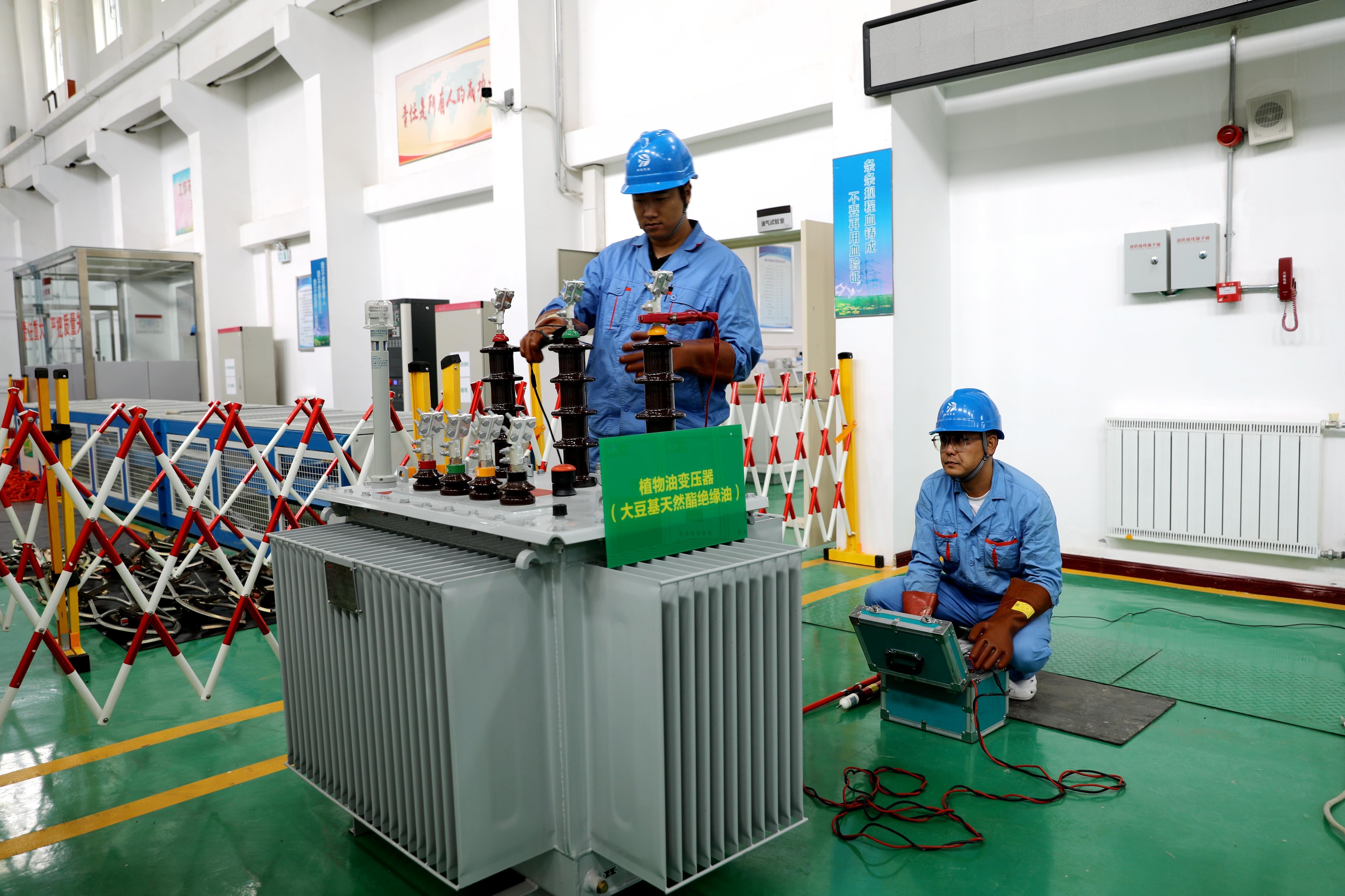国网西宁供电公司调试所工作人员调试国内首台高海拔植物油配电变压器。沈仪摄