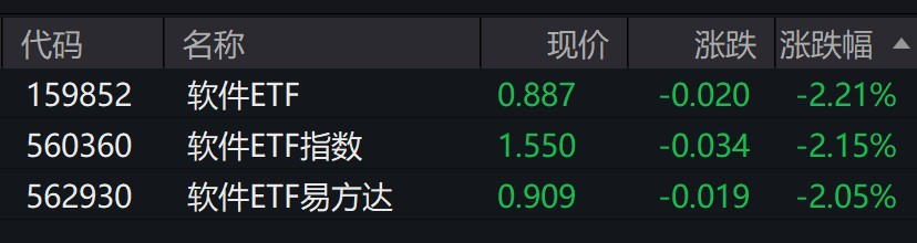 软件概念股走弱,指南针跌超7%,科大讯飞、同花顺、金山办公、拓维信息跌超2%。