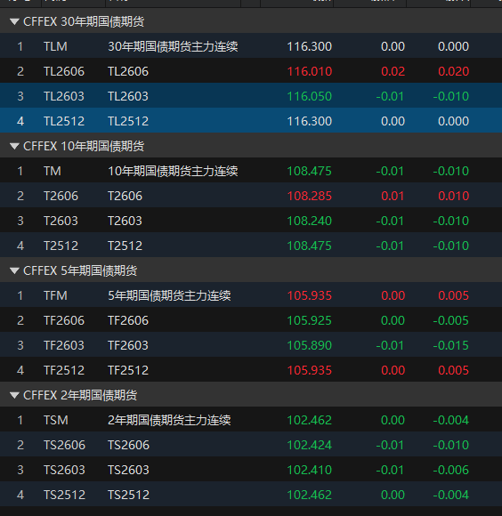 上证报中国证券网讯 11月11日,国债期货收盘多数持平,30年期主力合约持平于116.300元;10年期主力合约跌0.01%,报108.475元;5年期主力合约持平于105.935元;2年期主力合约持平于102.462元。