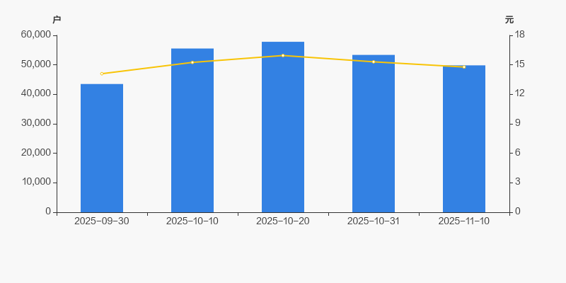 2025年9月30日至今,公司股东户数显著增长,区间涨幅为14.54%。2025年9月30日至2025年11月10日区间股价上涨4.82%。