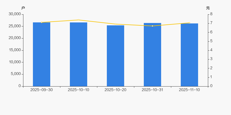 2025年9月30日至今,公司股东户数有所下降,区间跌幅为1.66%。2025年9月30日至2025年11月10日区间股价下降0.70%。