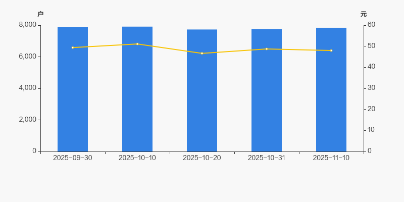 截至2025年11月10日,公司最新总股本为8724万股,其中流通股本为1968.74万股。户均持有流通股数量为2511股,较上期略有下降;户均流通市值12.05万元。