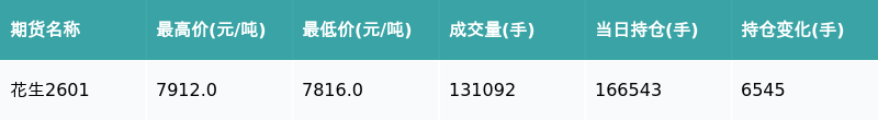 南财智讯11月11日电,南财金融终端盘后期货数据显示,郑州商品交易所的花生主力合约收涨1.46%,收盘报7896.0元/吨,日内资金流入4535.94万元。其他相关指标见下表:
