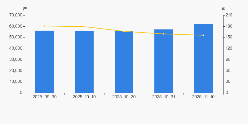 截至2025年11月10日,公司最新总股本为3.03亿股,其中流通股本为2.09亿股。户均持有流通股数量由上期的3631股下降至3352股,户均流通市值52.46万元。