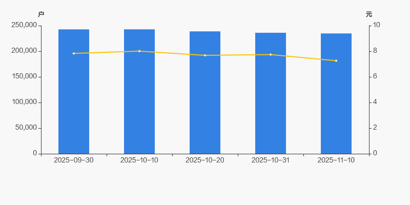自2025年10月10日以来,公司股东户数连续3期下降,截至目前减幅为3.31%。2025年10月10日至2025年11月10日区间股价下降9.36%。